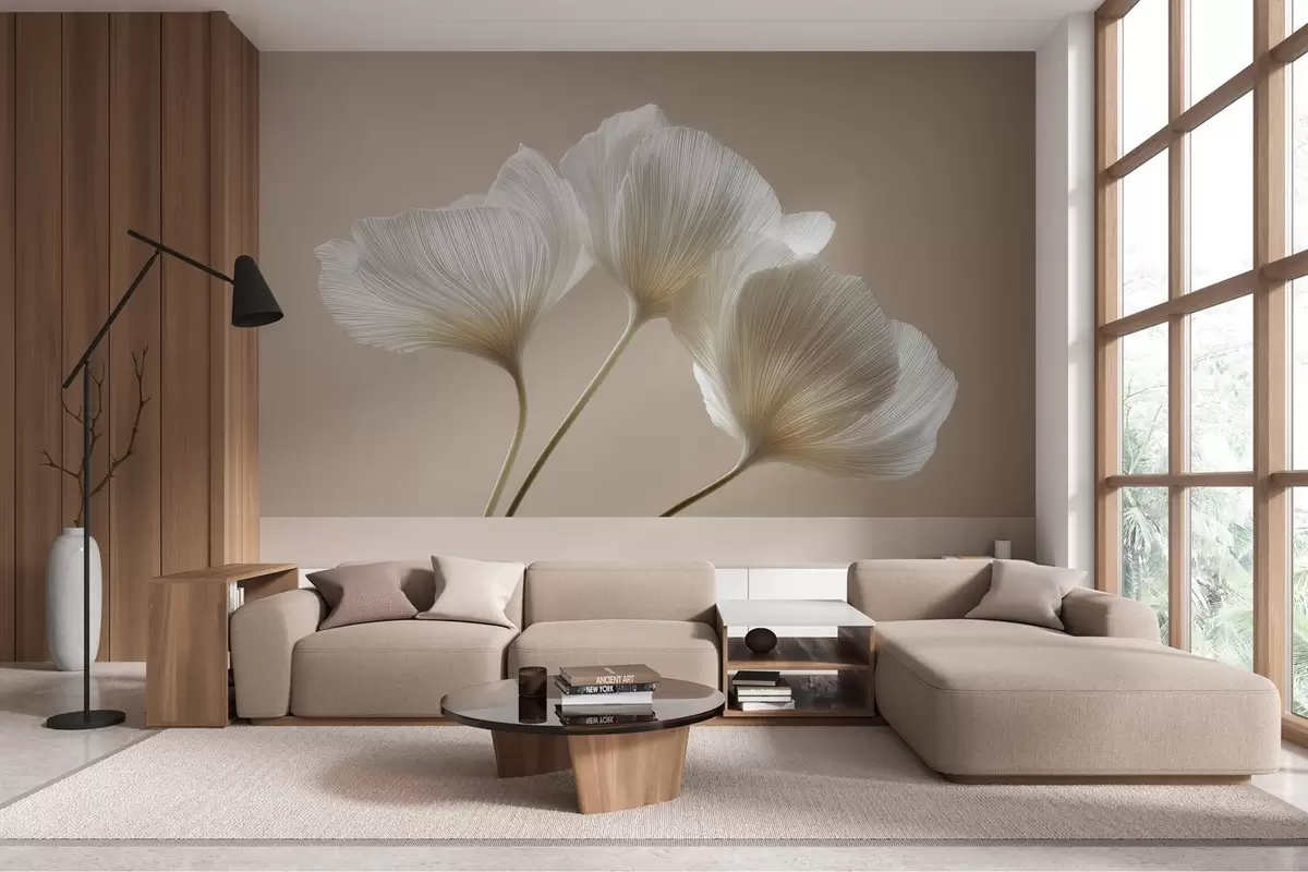 Тапете за зид три нежна цвета на беж позадини бр. w04810