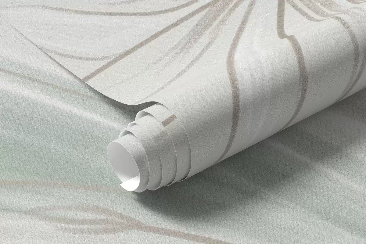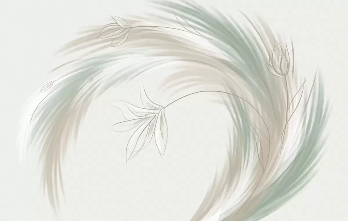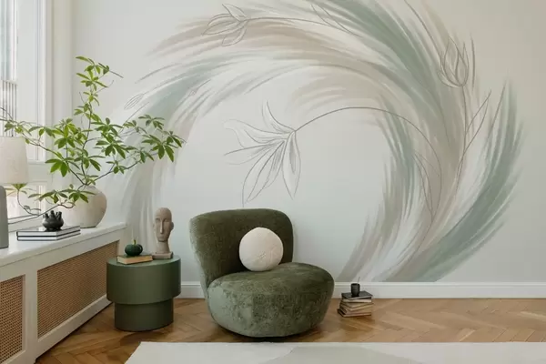 Тапете за зид зелено и беж перје и цвеће, ручно осликано бр. w04816