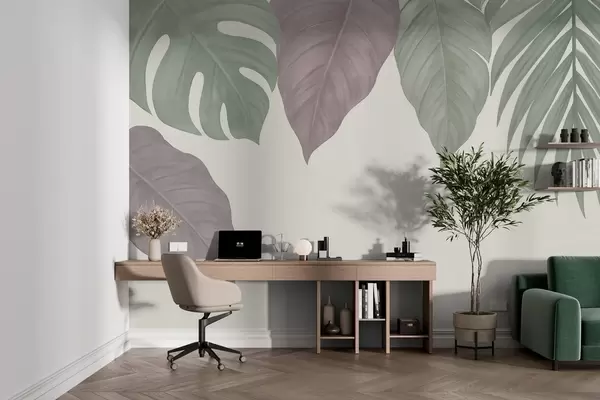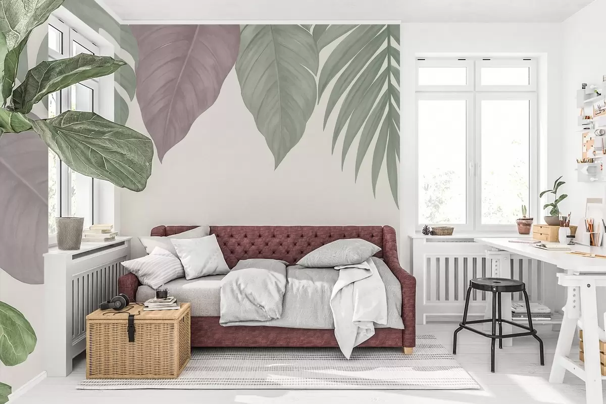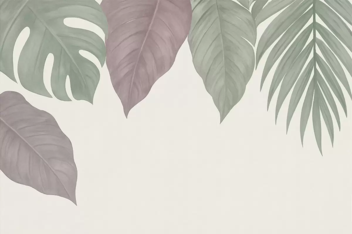 Тапете за зид велики тропски листови у једноставном стилу, одозго бр. w04819