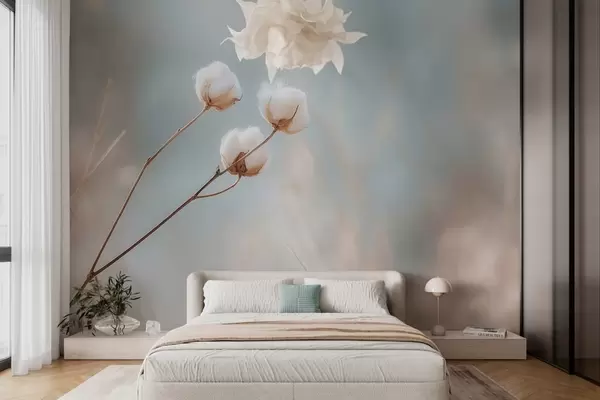 Тапете за зид Три цвета памука на замагљеној позадини бр. w04820