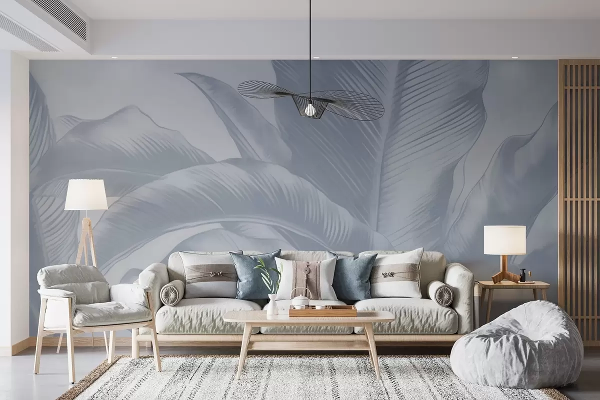 Тапете за зид Дуги листови, листови банане са излизаним ефектом бр. w04827v1