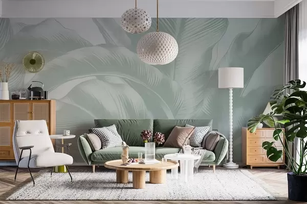 Тапете за зид Дуги листови, листови банане са излизаним ефектом бр. w04827v3