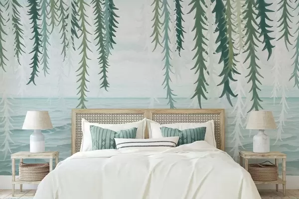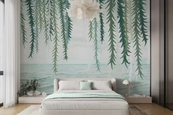 Тапете за зид Нежне винове лозе висе над водом у акварелном стилу бр. w04830