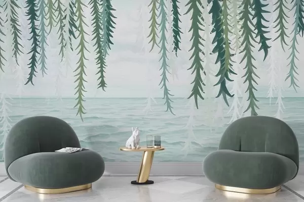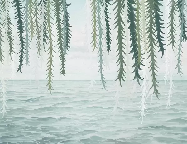 Тапете за зид Нежне винове лозе висе над водом у акварелном стилу бр. w04830