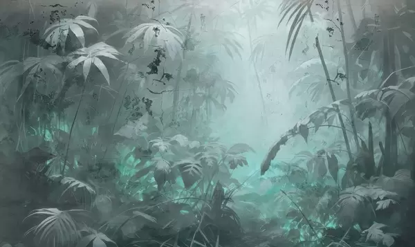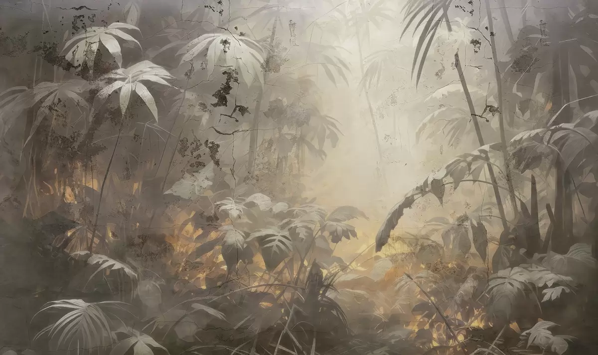 Тапете за зид Осликана џунгла иза гранџ бетонског зида бр. w04833