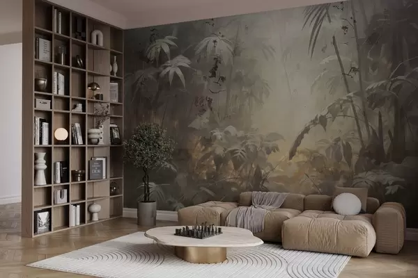 Тапете за зид Осликана џунгла иза гранџ бетонског зида бр. w04833