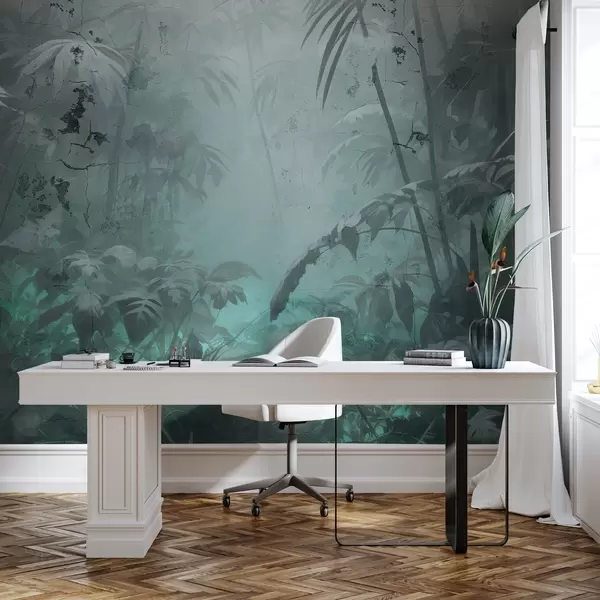 Тапете за зид Осликана џунгла иза гранџ бетонског зида бр. w04833v1
