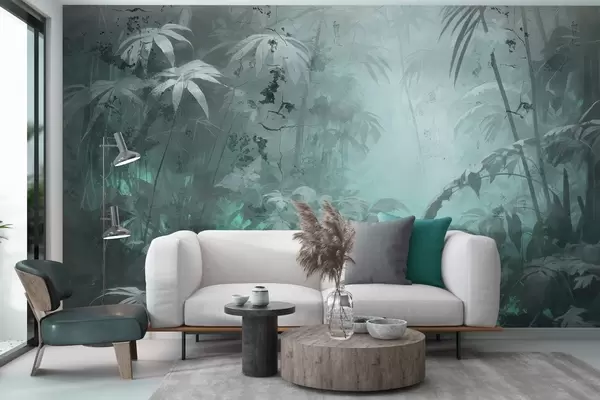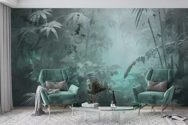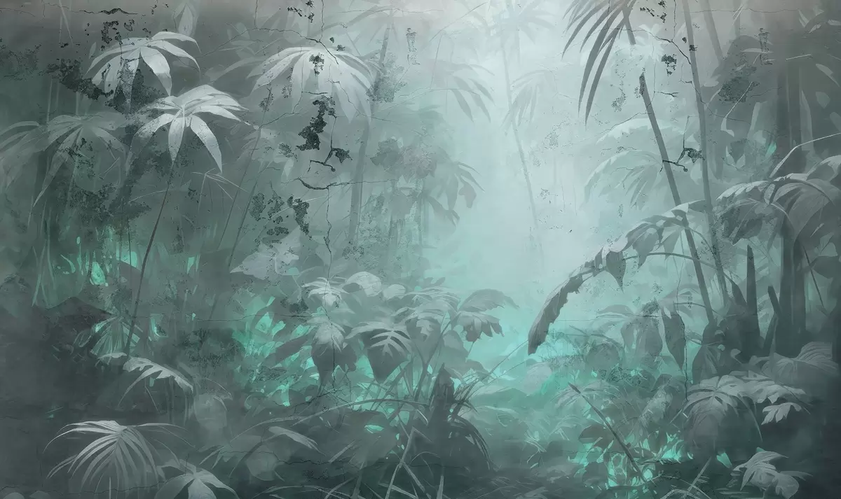 Тапете за зид Осликана џунгла иза гранџ бетонског зида бр. w04833v1