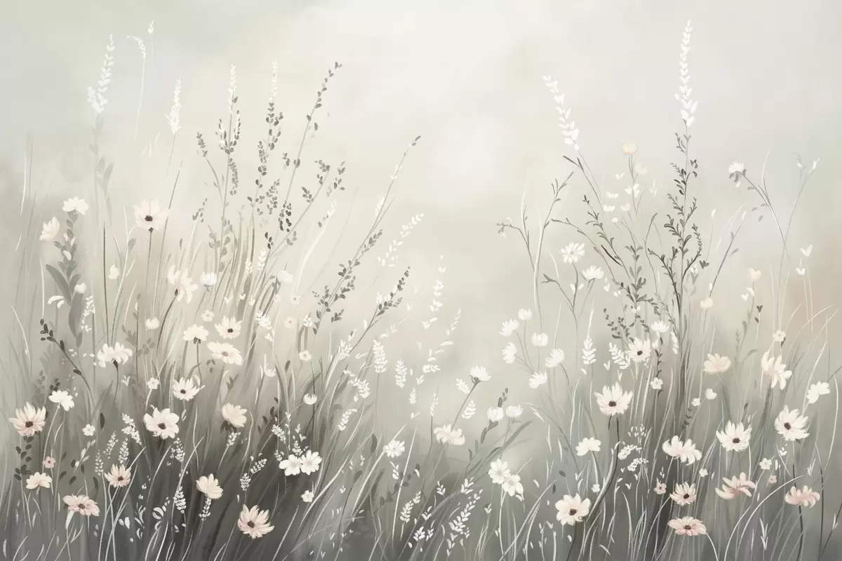 Тапете за зид Меки ливадни призор са белим цвећем и нежним травама бр. w05015v1