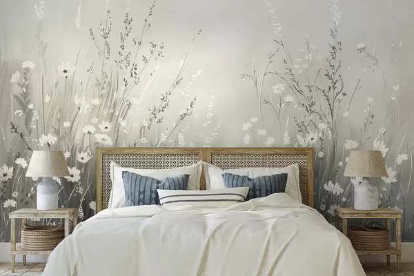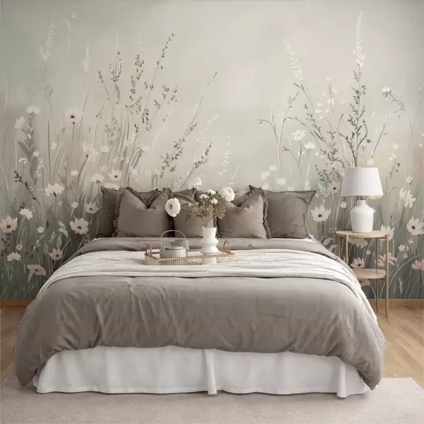 Тапете за зид Меки ливадни призор са белим цвећем и нежним травама бр. w05015v1