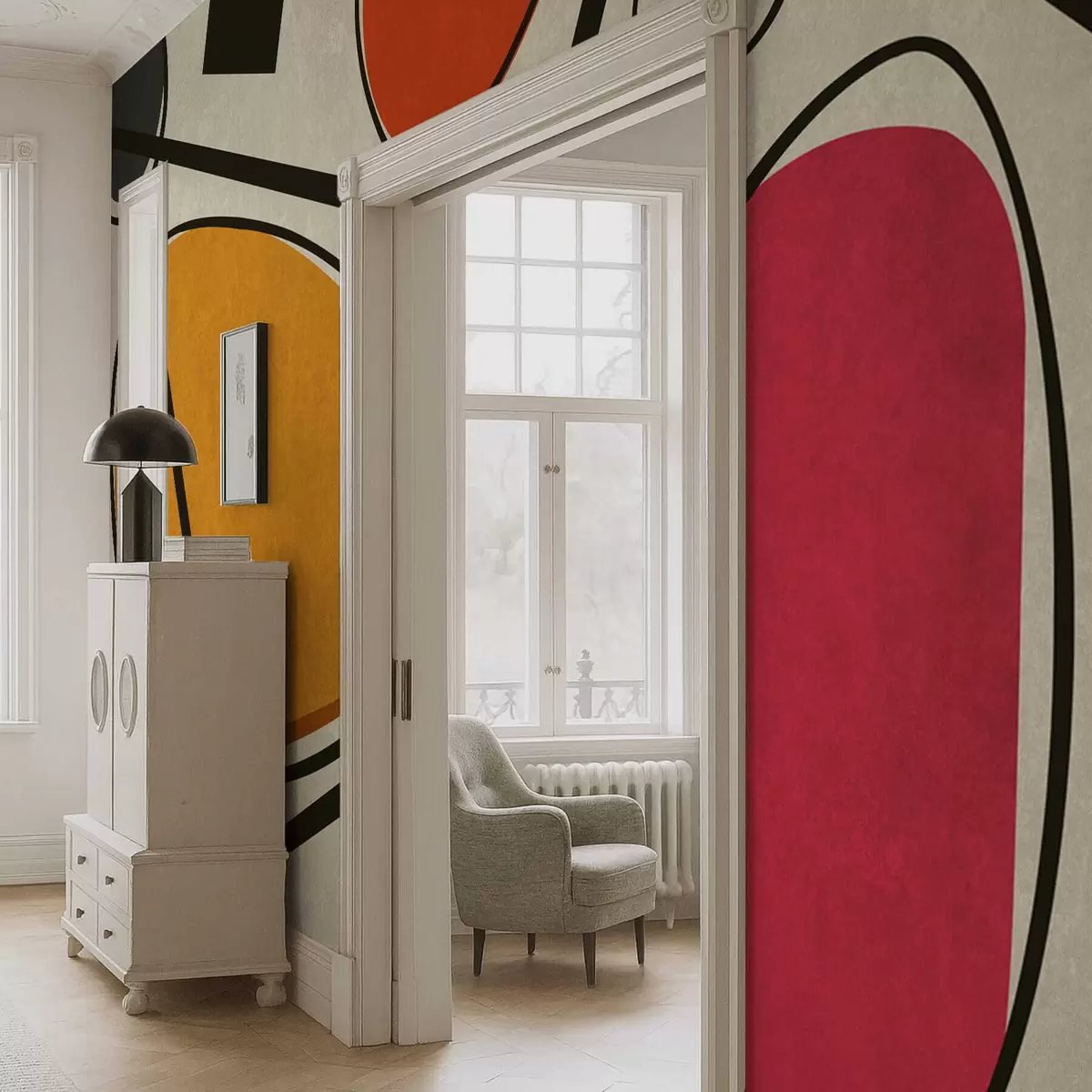 Тапете за зид Апстрактни облици и линије са смелим пољима боја бр. w05017
