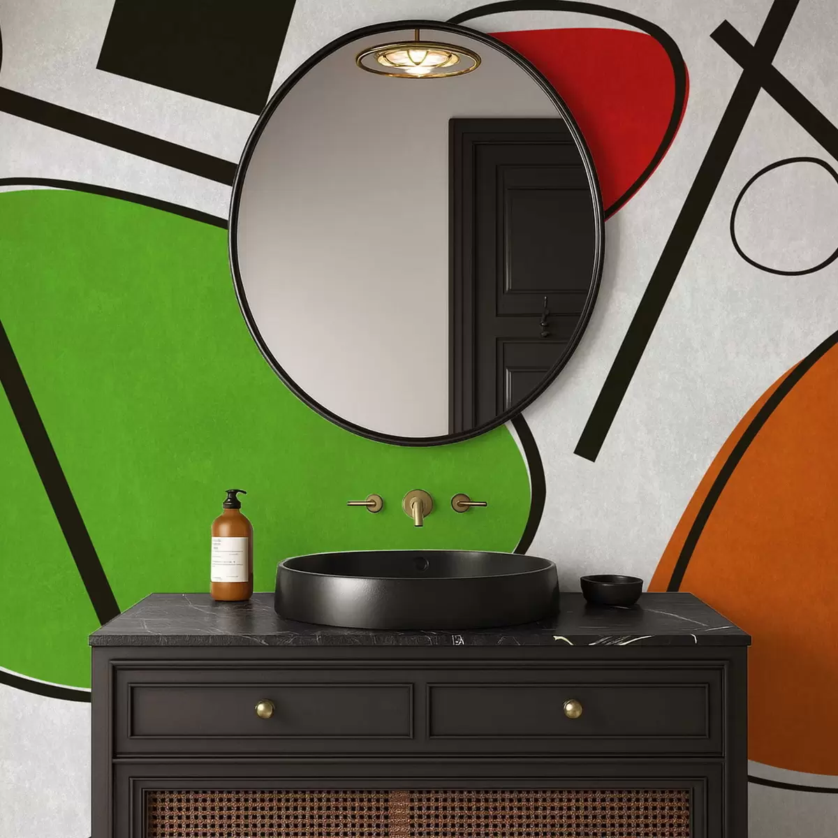 Тапете за зид Апстрактни геометријски облици са линијама и смелим обојеним површинама бр. w05017v1
