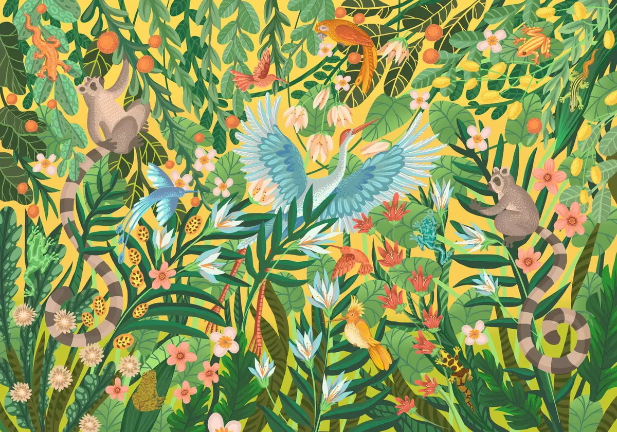 Тапете за зид Светла сцена са птицама и животињама у густом зеленилу бр. w05024v1