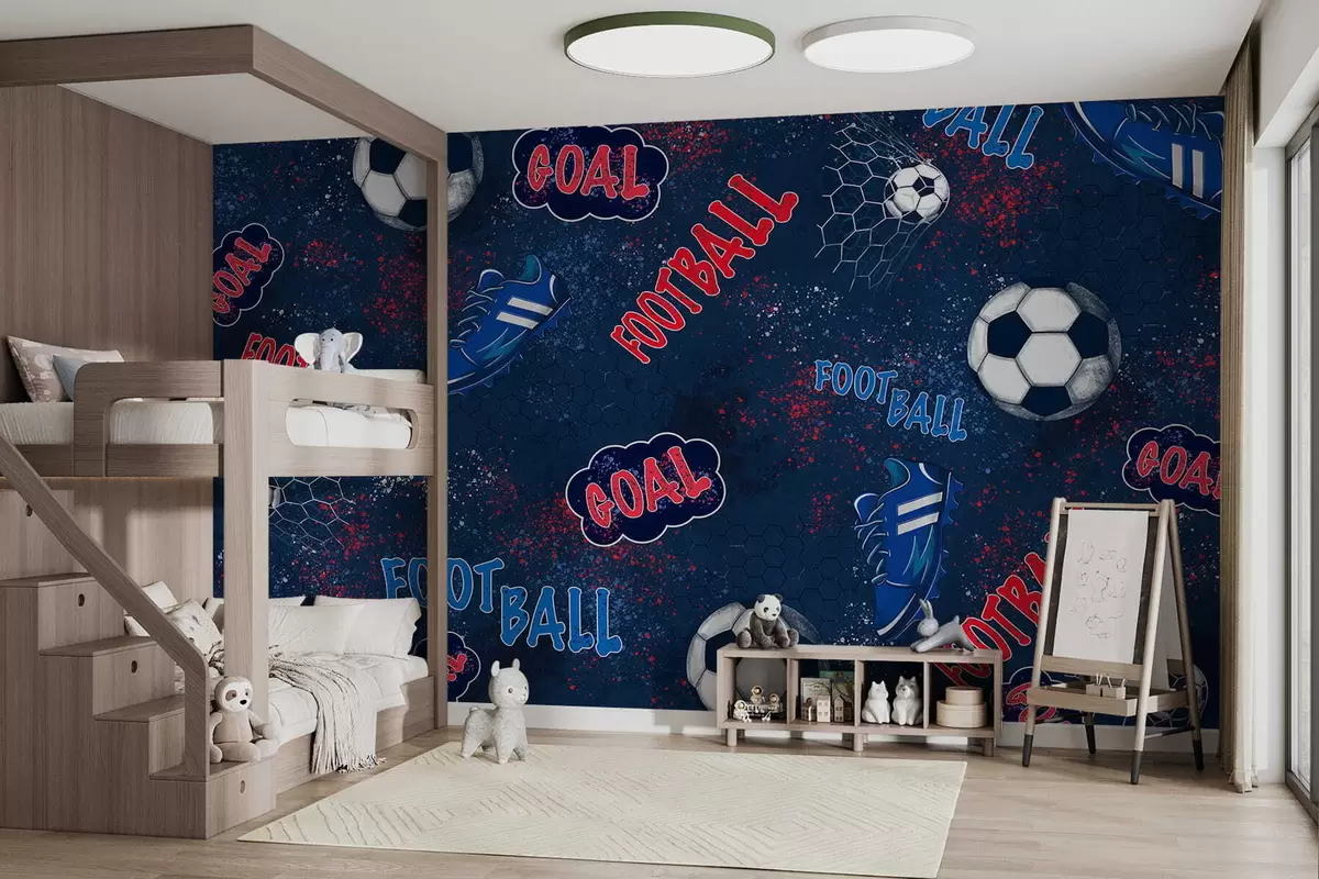 Тапете за зид Понављајући образац са лоптама, копачкама и текстуалним елементима бр. w05037v2