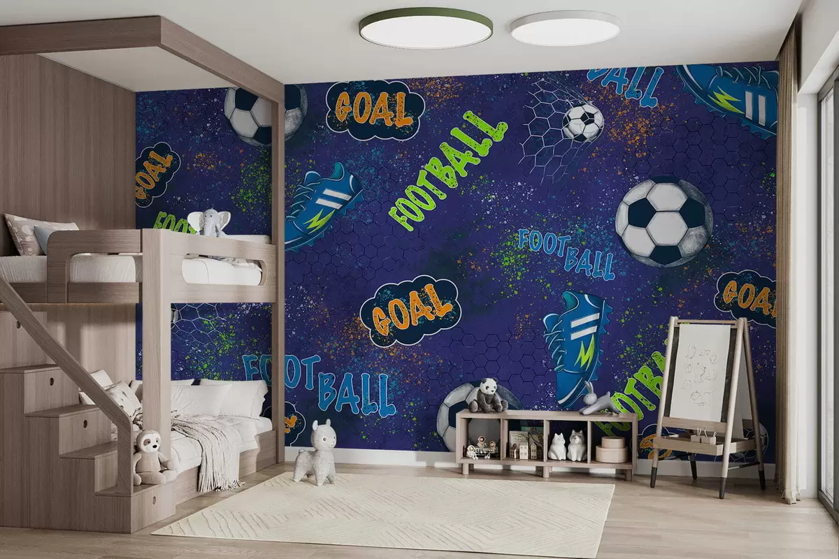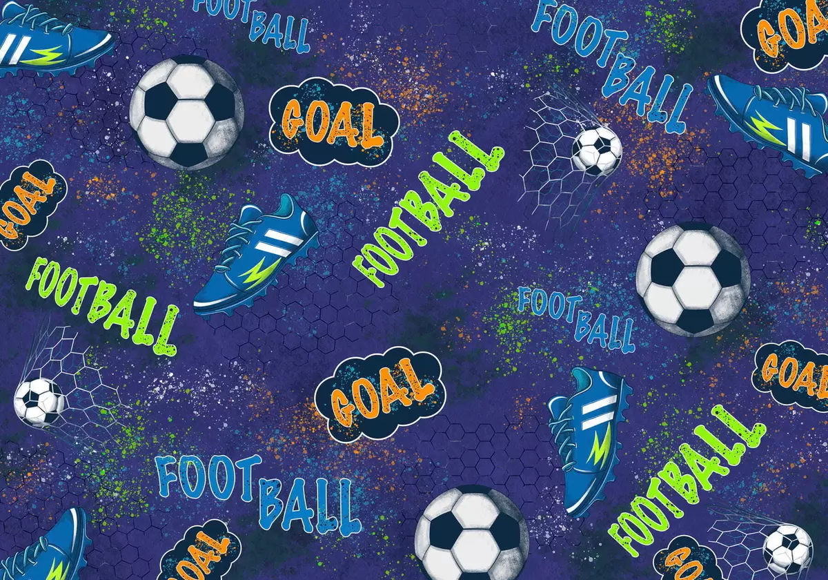 Тапете за зид Дечји фудбалски узорак у тамноплавим тоновима бр. w05037v3
