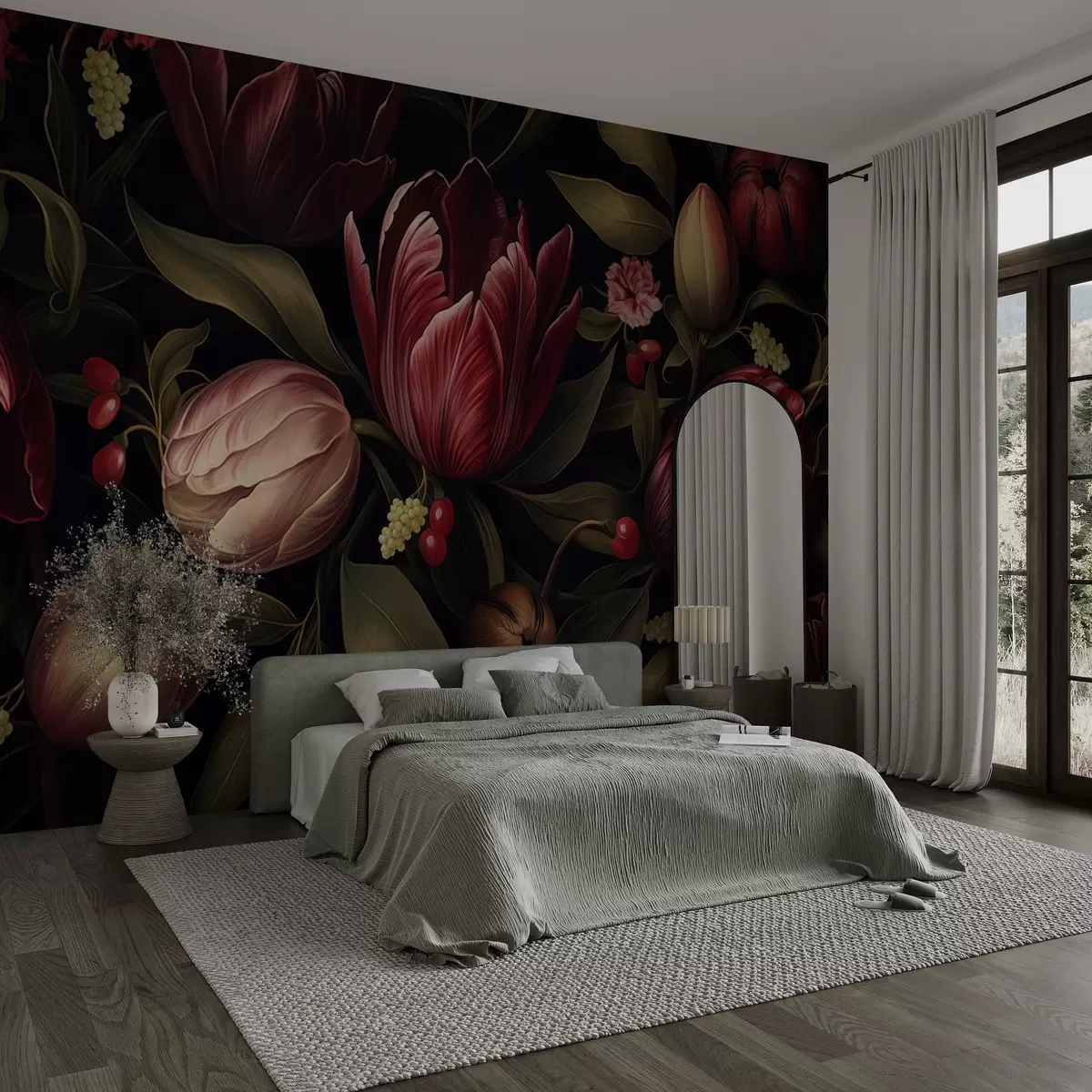 Тапете за зид Врт тамних тулипана бр. w05038