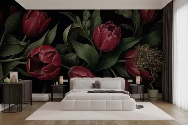 Тапете за зид Црвени тулипани ноћи бр. w05047
