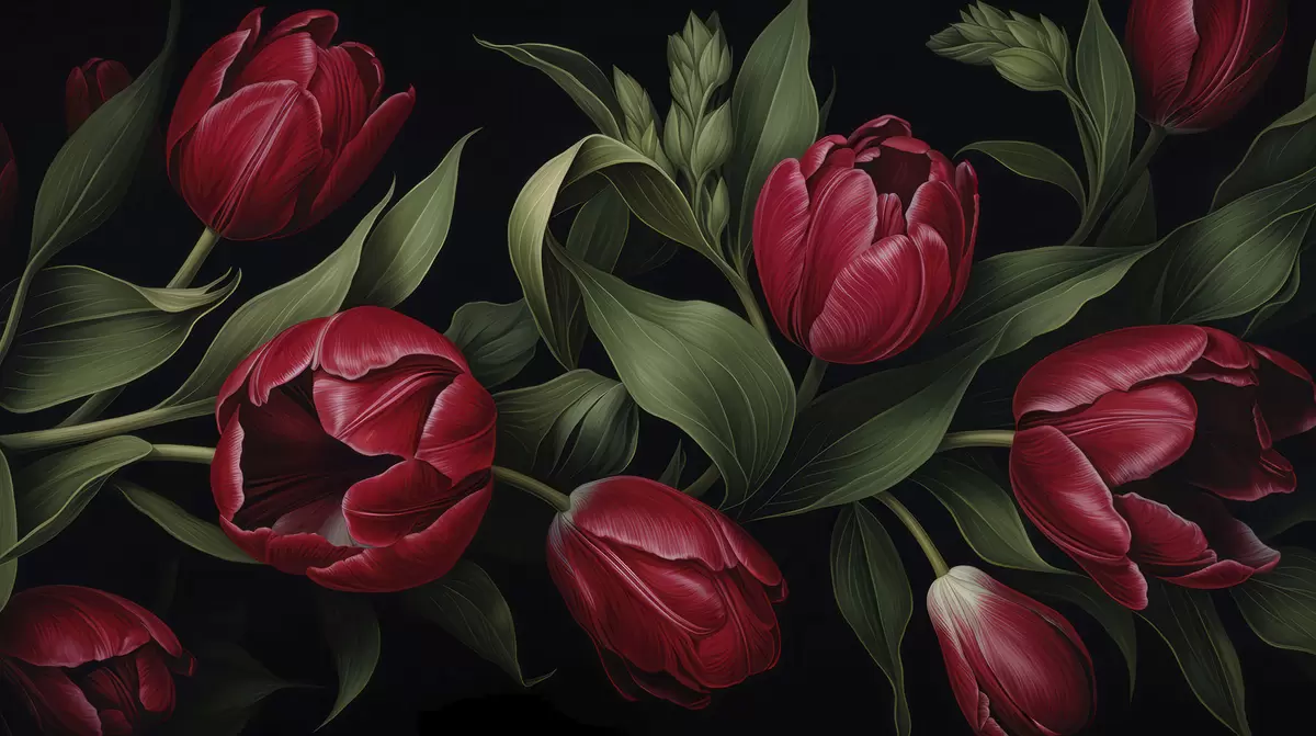 Тапете за зид Црвени тулипани ноћи бр. w05047
