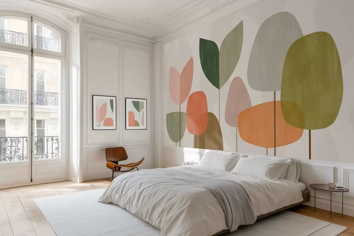 Тапете за зид апстрактно дрвеће у наивном стилу бр. w05059