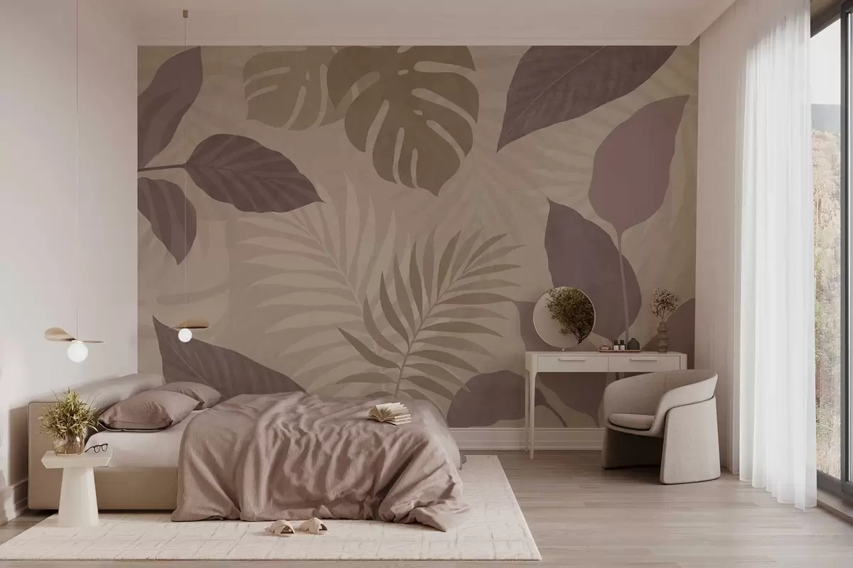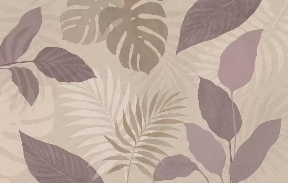 Тапете за зид текстурирано тропско лишће на пешчаној позадини бр. w05063