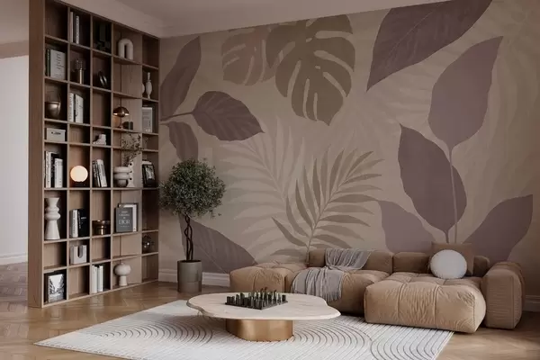 Тапете за зид текстурирано тропско лишће на пешчаној позадини бр. w05063