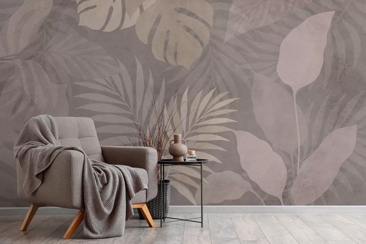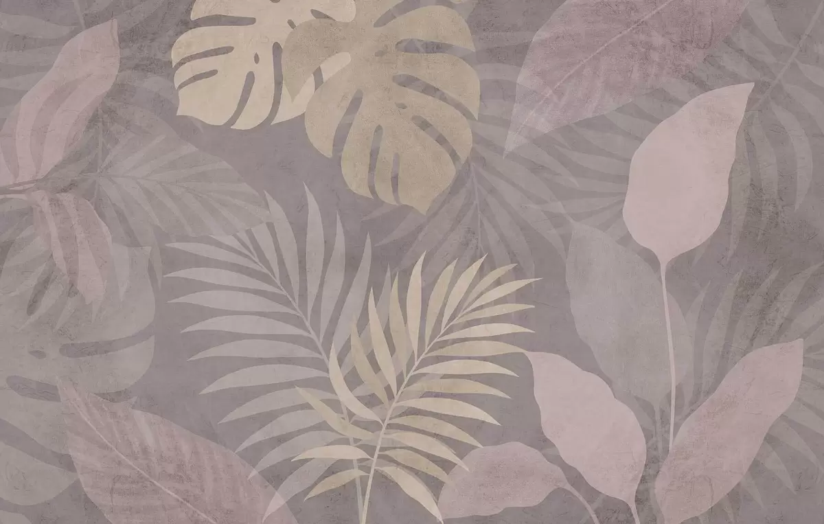 Тапете за зид текстурирано тропско лишће на сивој позадини бр. w05063v1