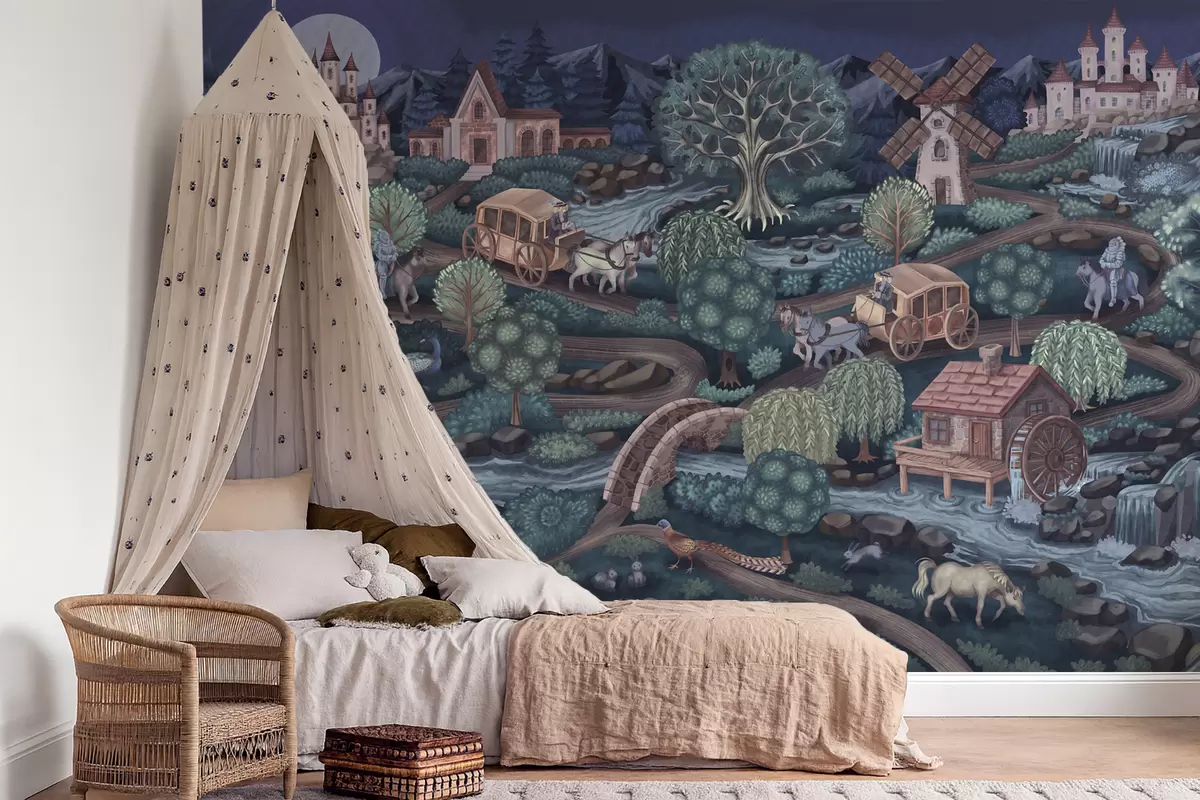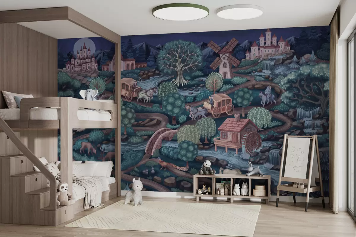 Тапете за зид Ноћна вила са дворцима, млиновима и шумом бр. w05091