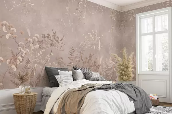 Тапете за зид Меки беж ботанички узорак са дивљим цвећем бр. w05092v2