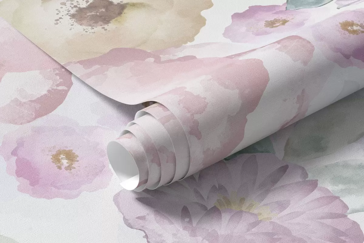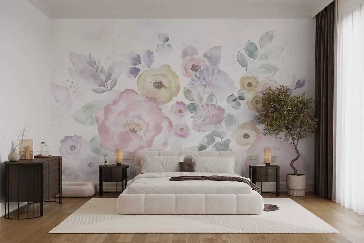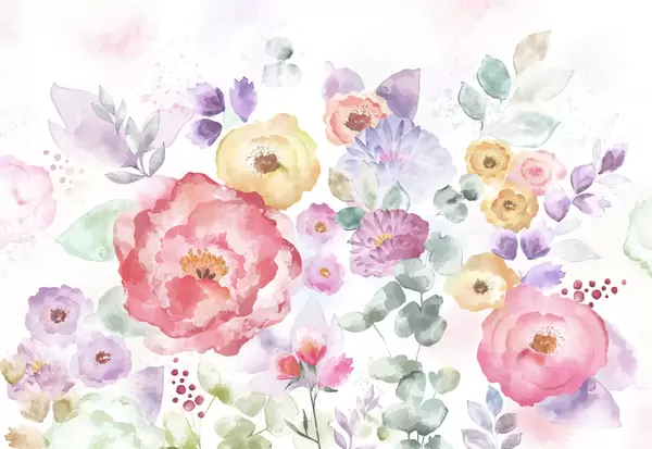 Тапете за зид Мекана акварелна композиција са цвећем и лишћем бр. w05093