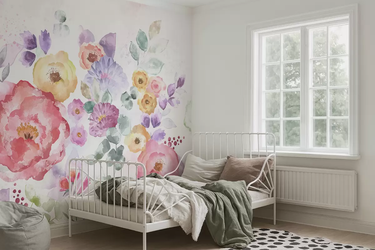 Тапете за зид Пастелно акварелно цвеће на светлој позадини бр. w05093v1