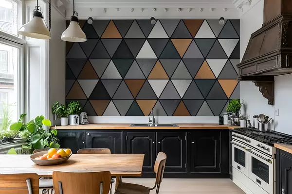 Тапете за зид Троугласти узорак са сивим и топлим нијансама бр. w05095v1