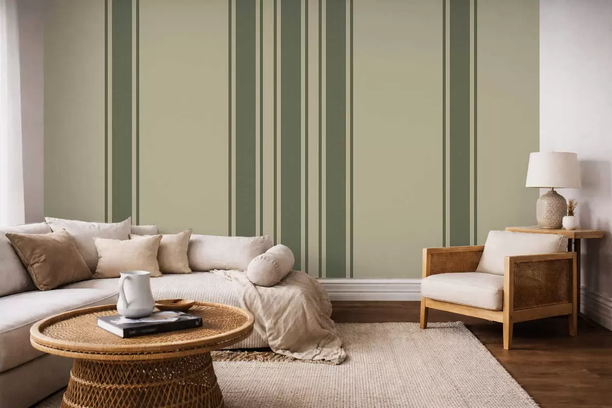 Тапете за зид Вертикалне пруге у пригушеној зеленој и беж палети бр. w05098