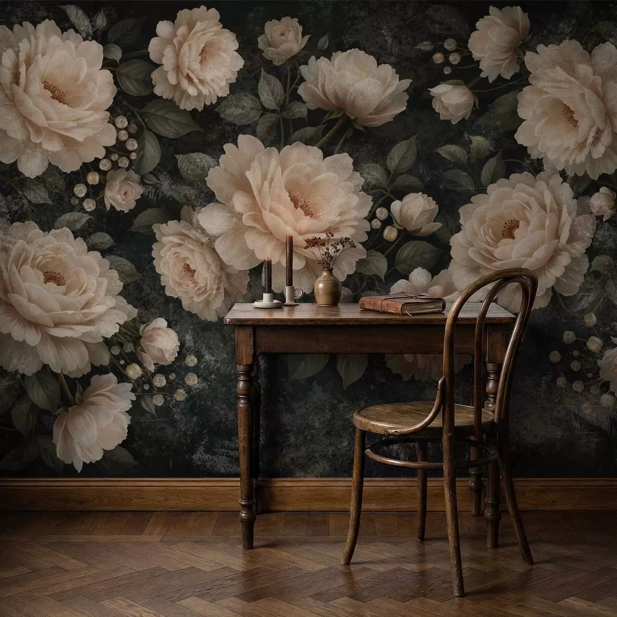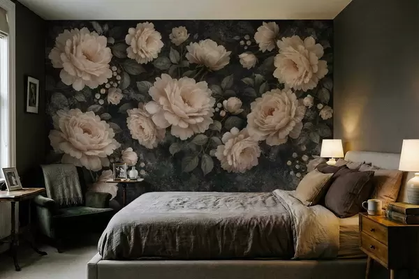Тапете за зид Волуменозно цвеће у беж палети на тамној позадини бр. w05114