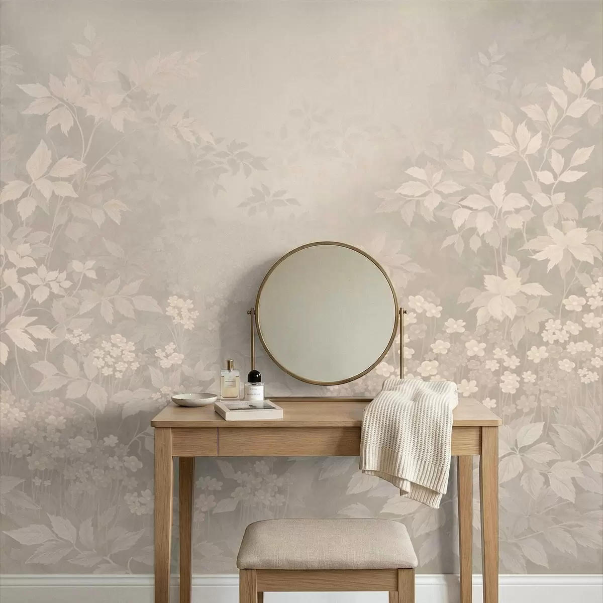 Тапете за зид Меки ботанички узорак са лишћем и цвећем у магли бр. w05115v1