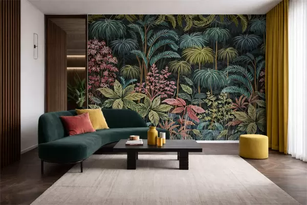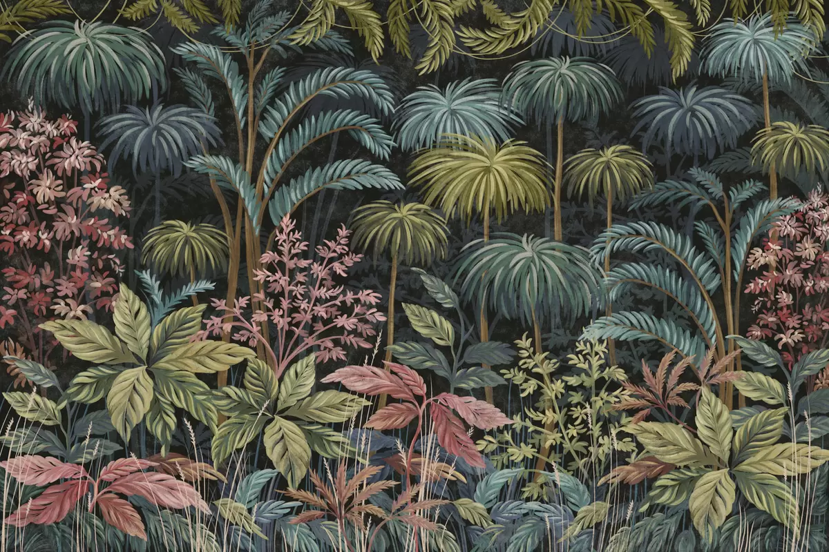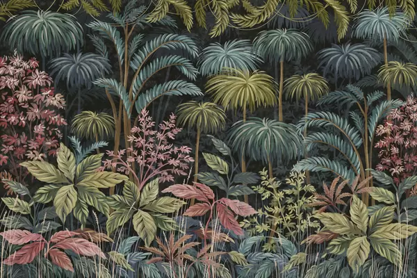 Тапете за зид Густо тропско лишће са великим листовима бр. w05116