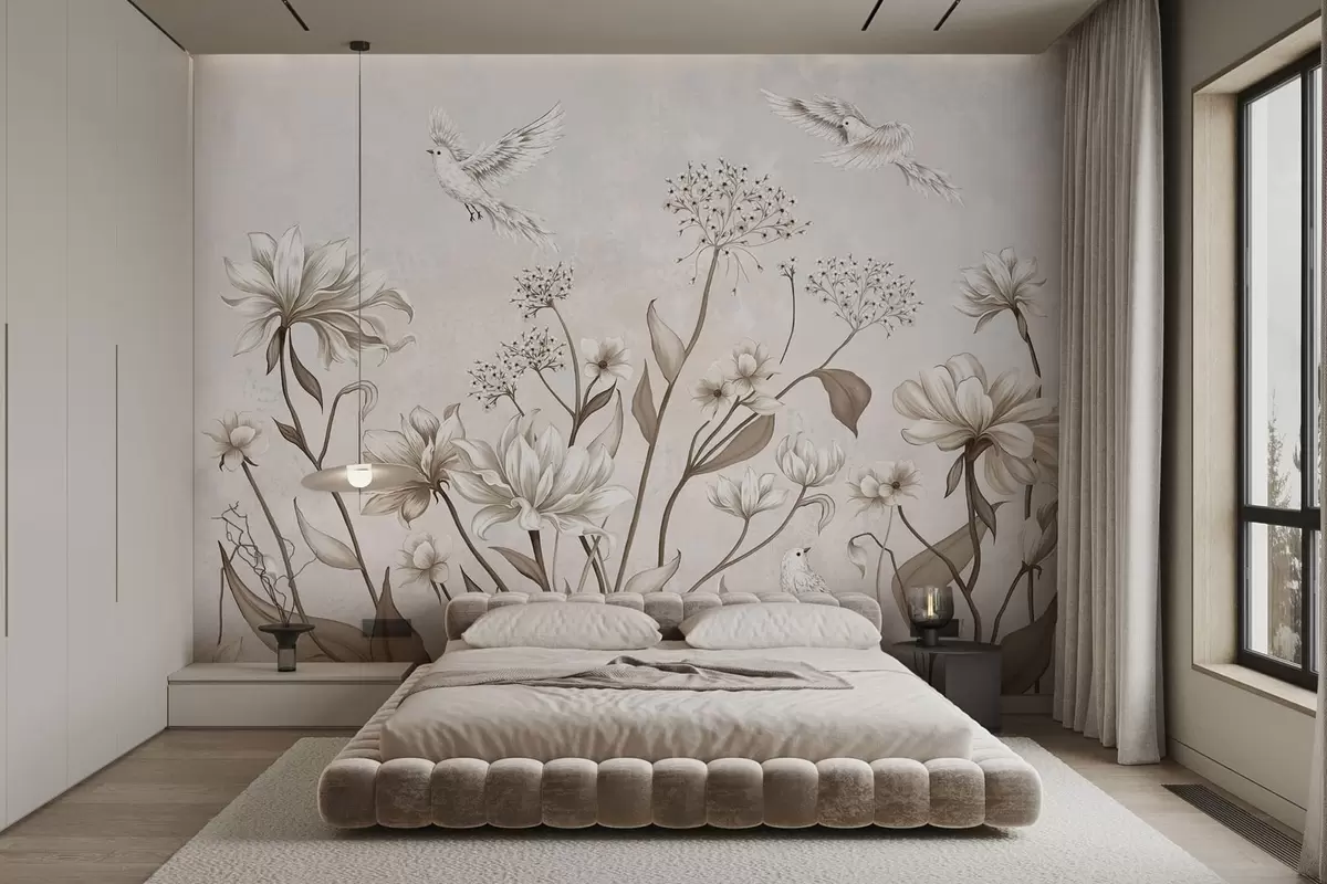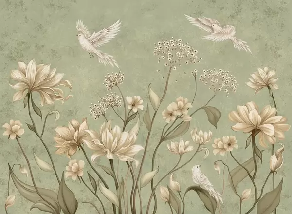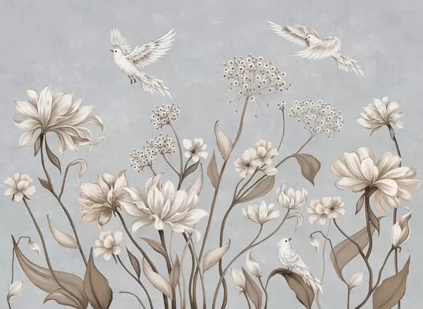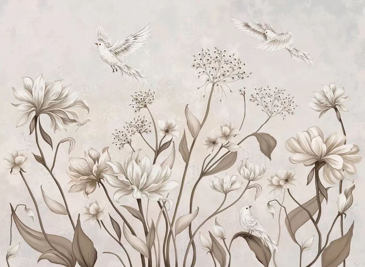 Тапете за зид Светло цвеће и птице на мекој позадини бр. w05118