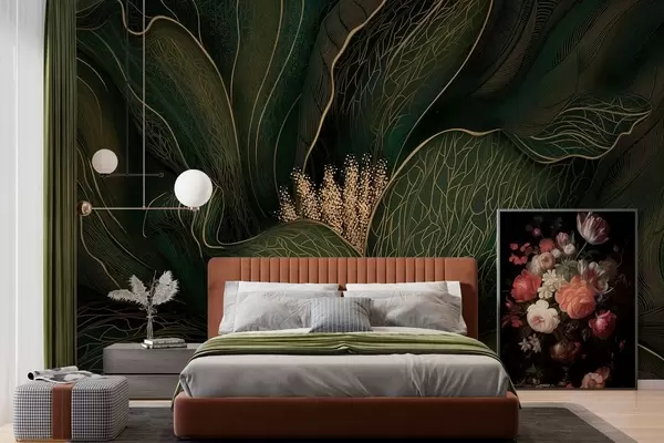 Тапете за зид Тамнозелени апстрактни цвет са финим линијским детаљима бр. w05119v1