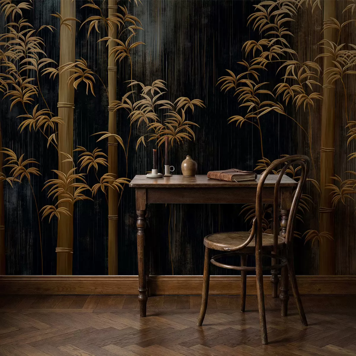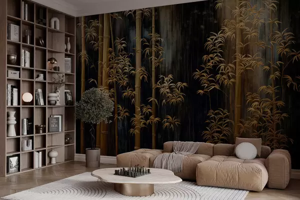 Тапете за зид Тамни бамбус на црној позадини бр. w05120