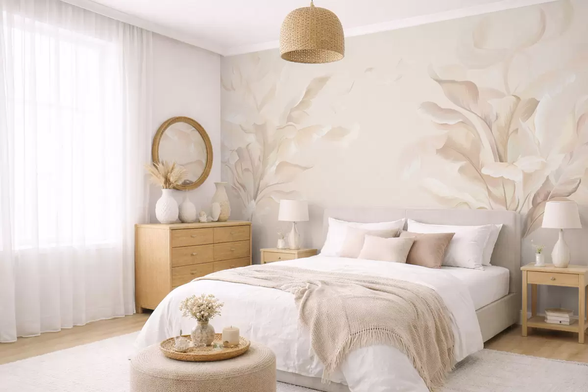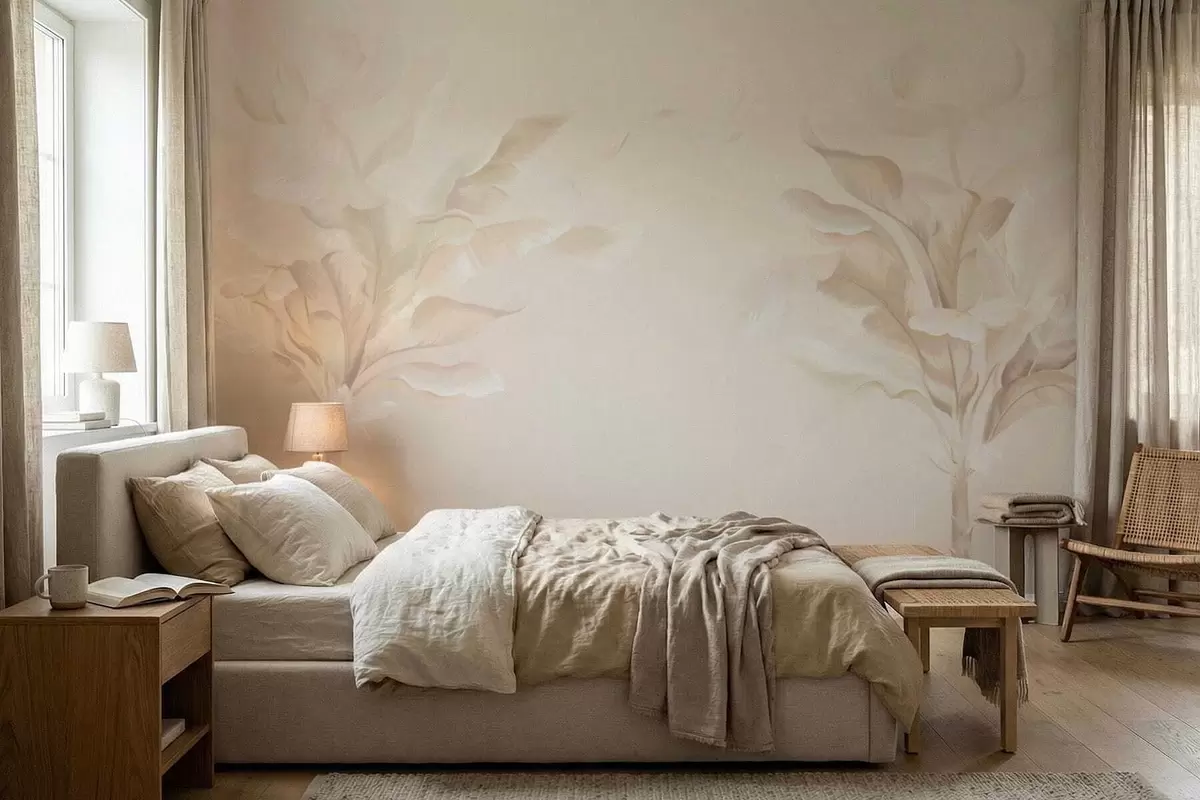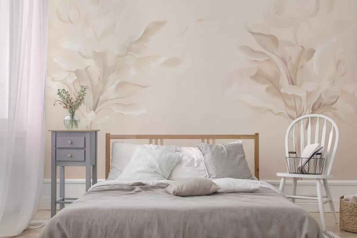 Тапете за зид Прозрачне декоративне биљке у топлим кремастим тоновима бр. w05126