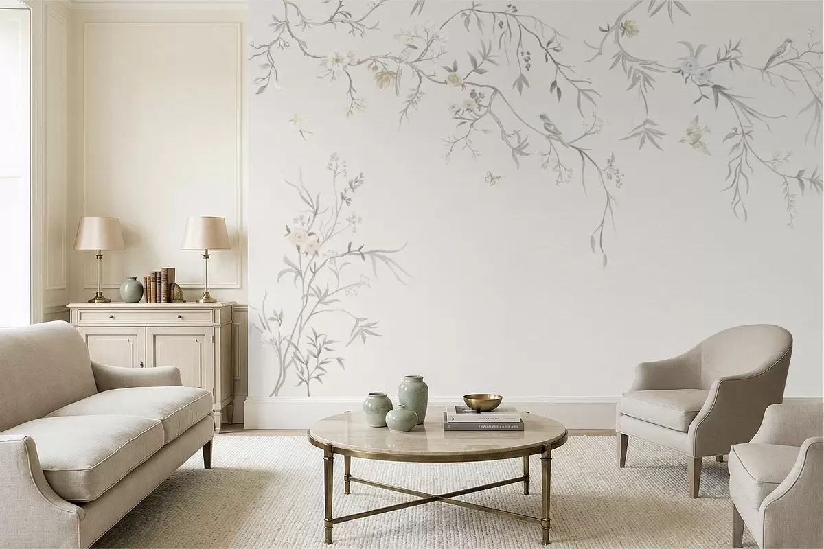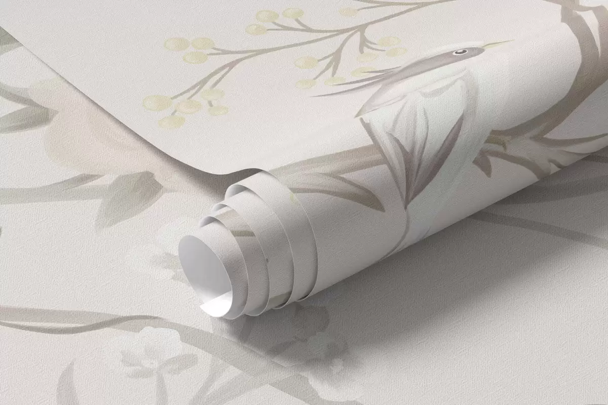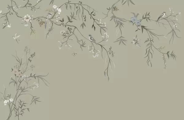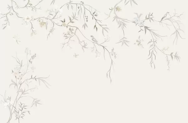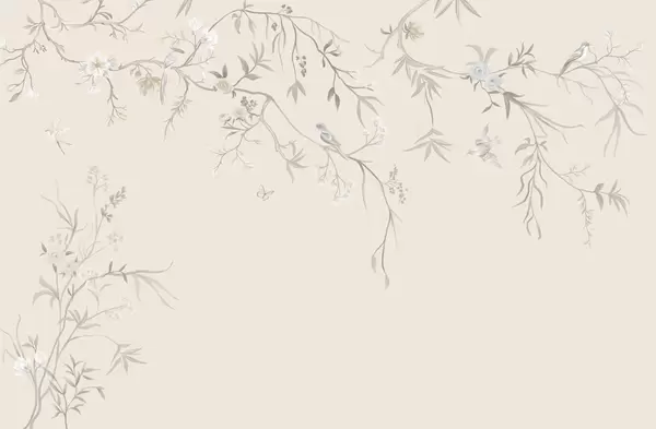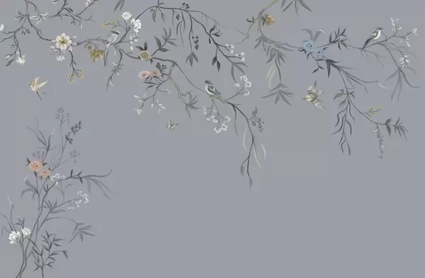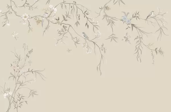 Тапете за зид Нежно цвеће и птице на кредастој позадини бр. w05127
