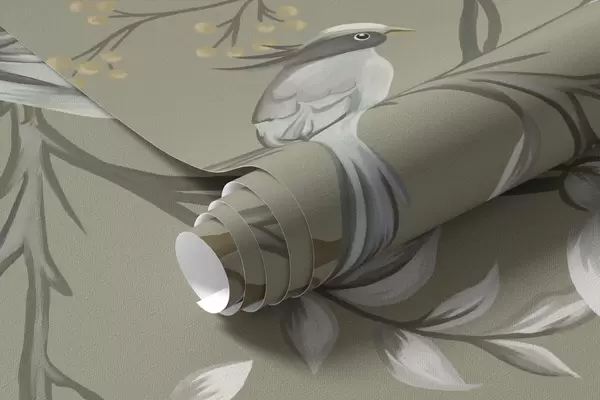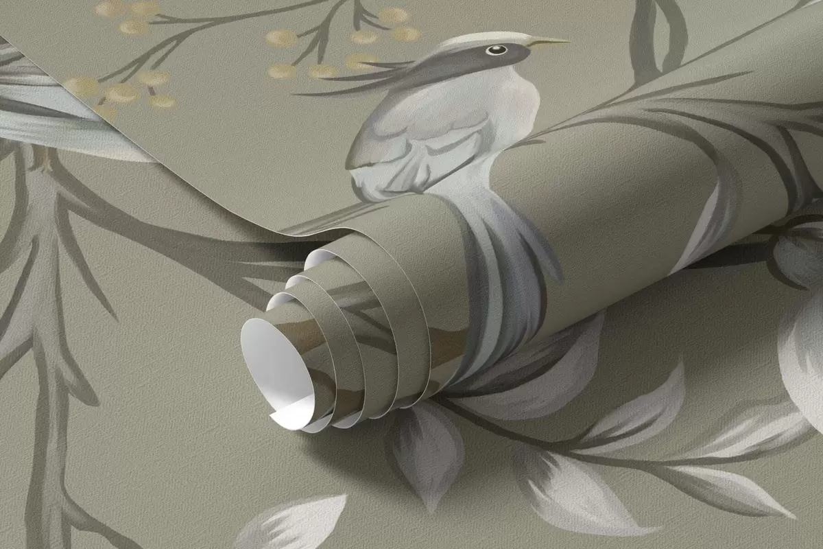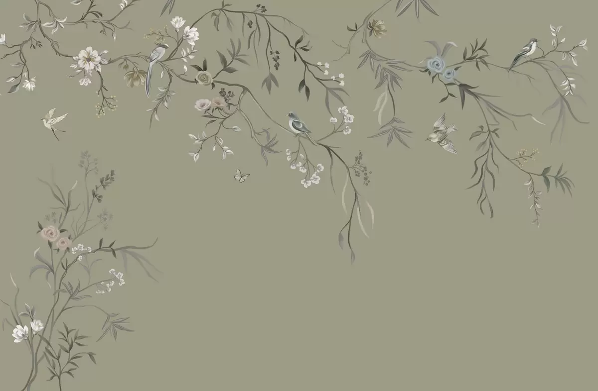 Тапете за зид Цветни мотив са птицама на сивој позадини бр. w05127v4