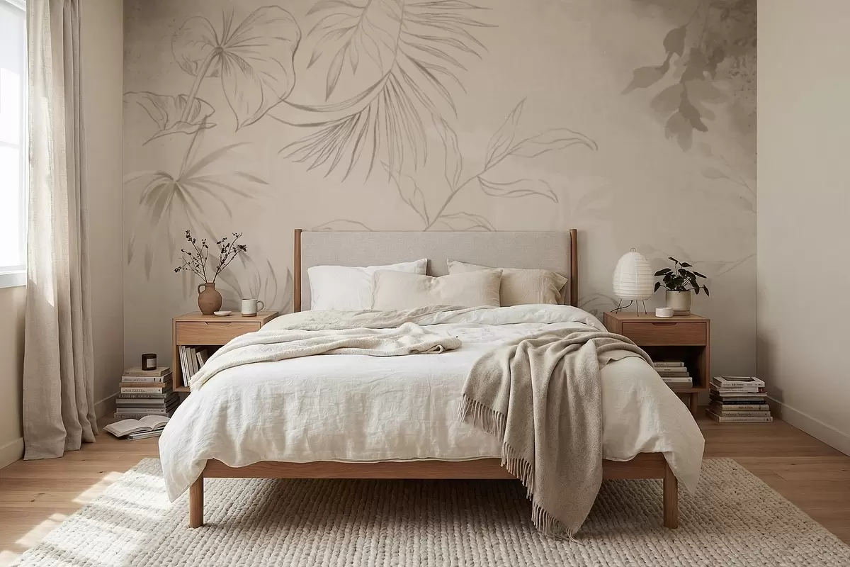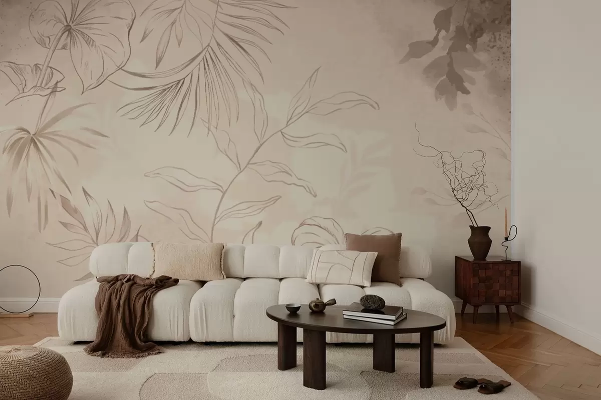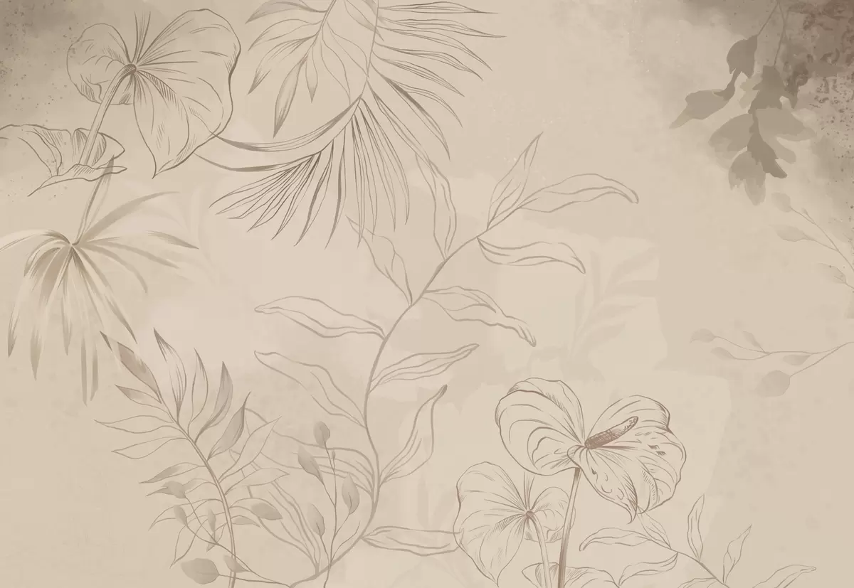 Тапете за зид Линеарне биљке на текстурираној беж позадини бр. w05128