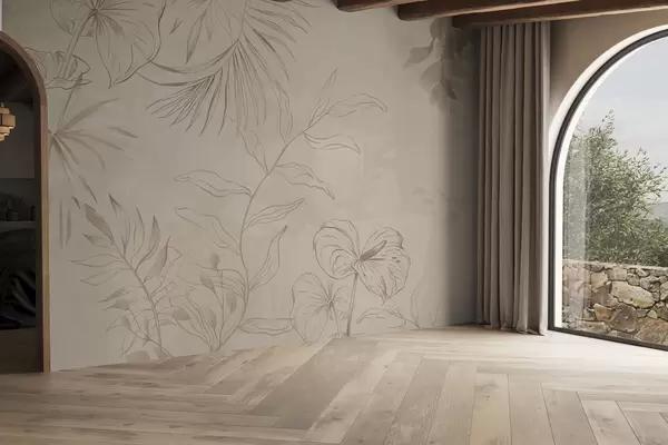 Тапете за зид Линеарне биљке на текстурираној беж позадини бр. w05128