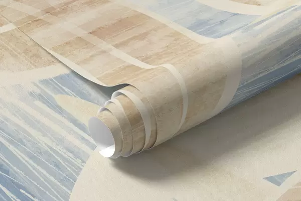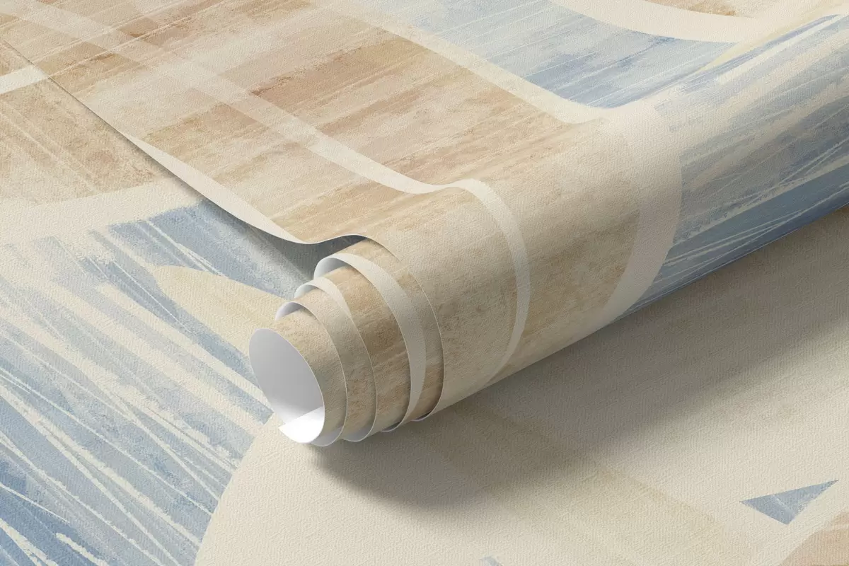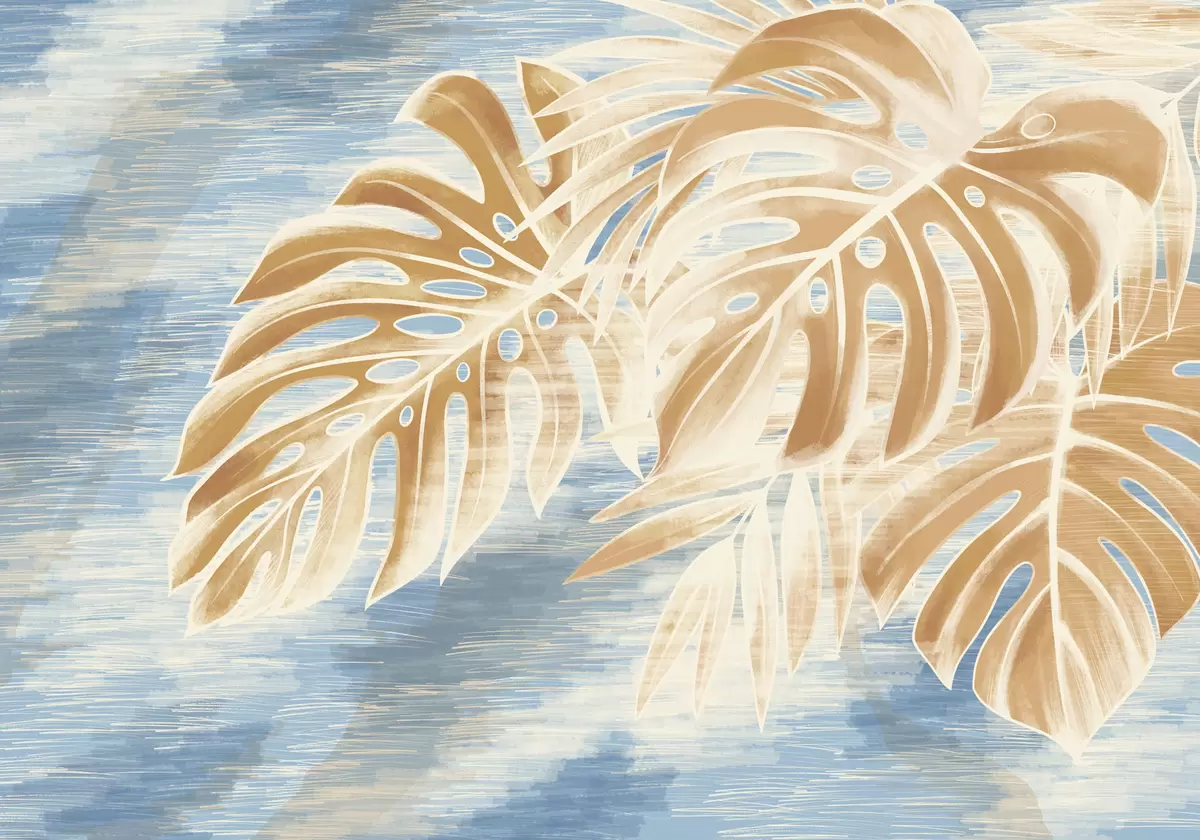 Тапете за зид Листови у светлим пешчаним тоновима на плавој позадини бр. w05130v1