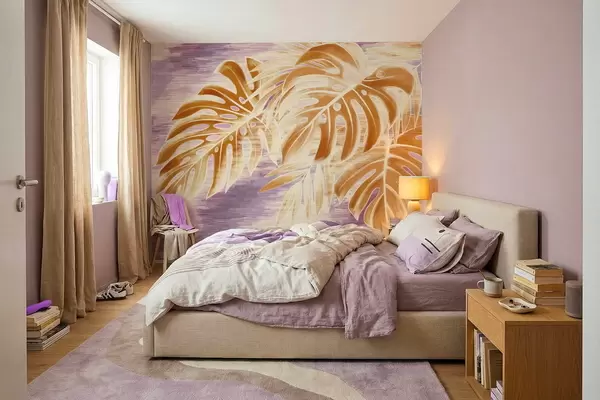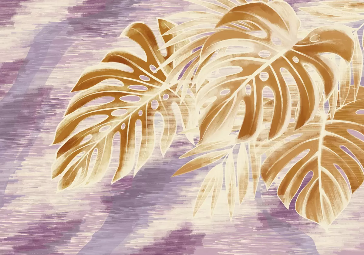 Тапете за зид Листови у топлим наранџастим тоновима на љубичастој позадини бр. w05130v2