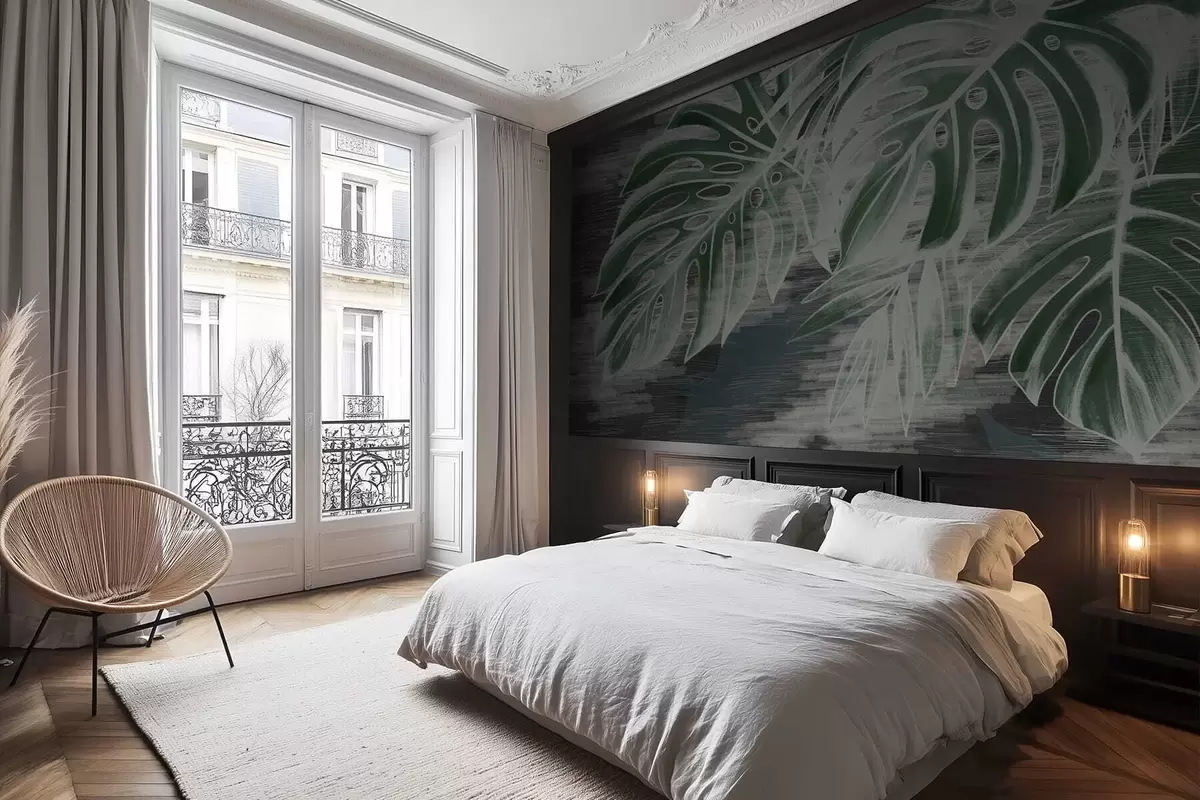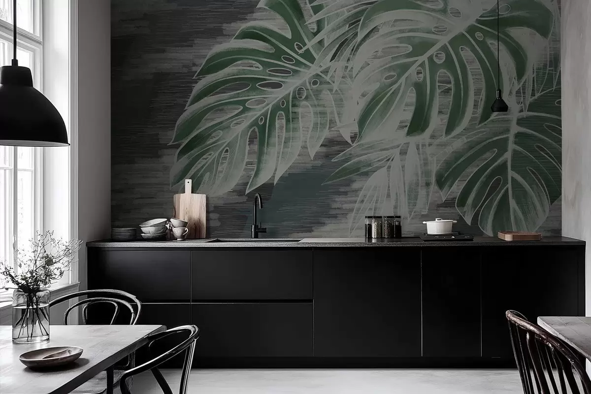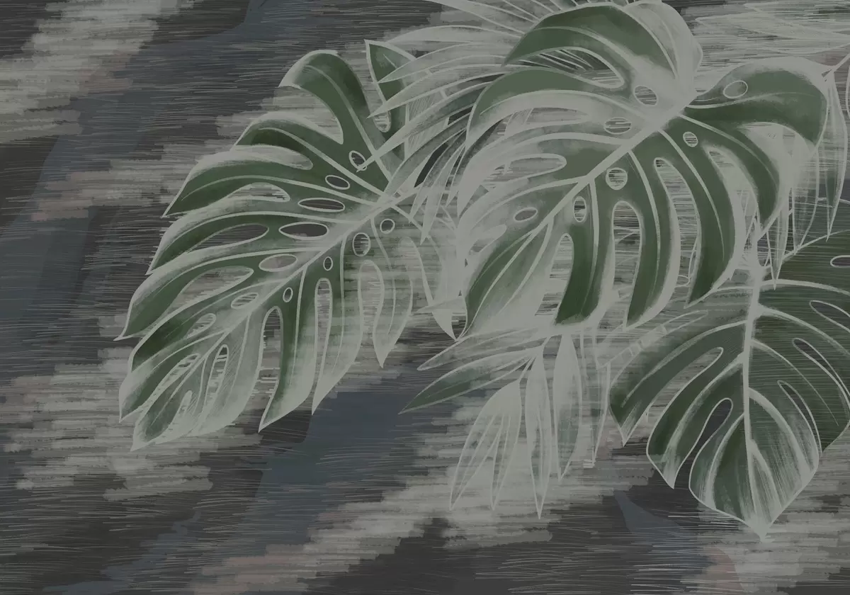 Тапете за зид Тамнозелено лишће на текстурираној тамној позадини бр. w05130v4