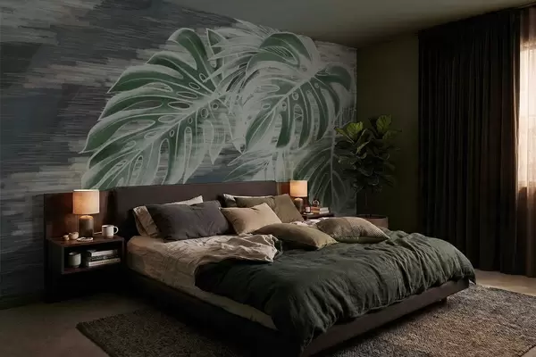 Тапете за зид Тамнозелено лишће на текстурираној тамној позадини бр. w05130v4