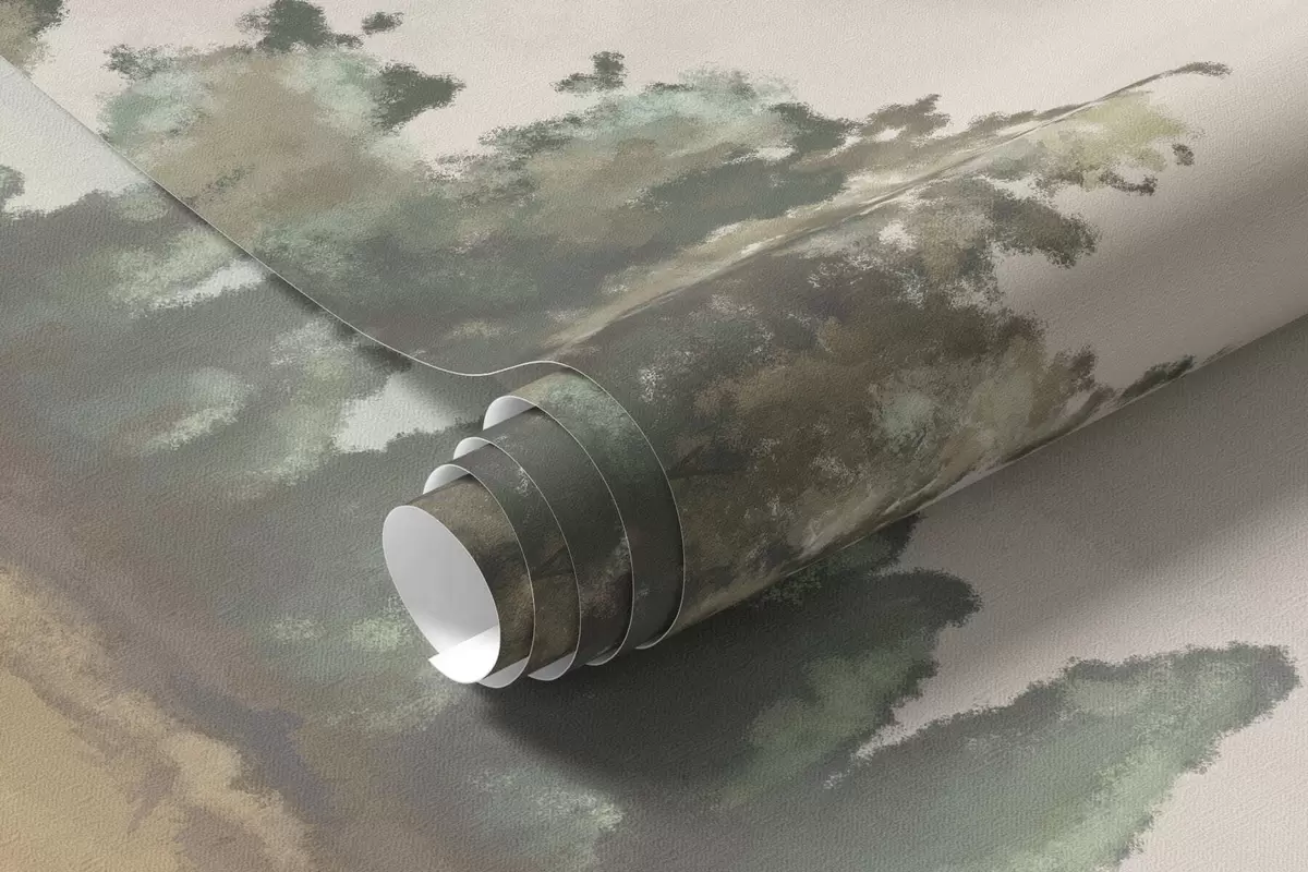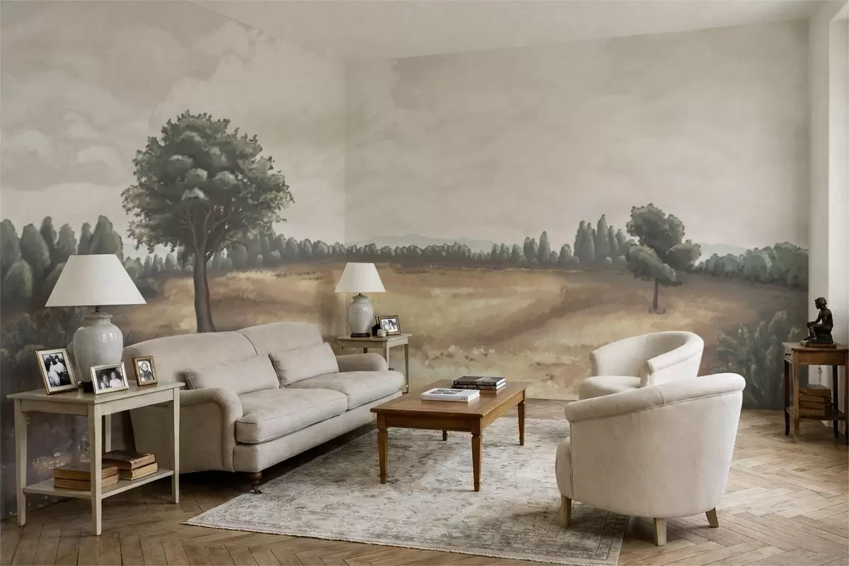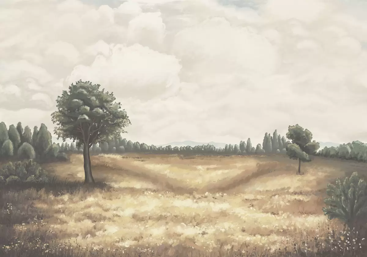 Тапете за зид Осликани пејзаж са дрвећем и отвореним пољем бр. w05131