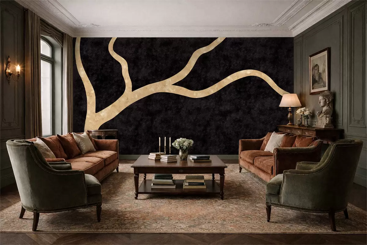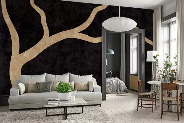 Тапете за зид Светла грана на црној позадини бр. w05144v4