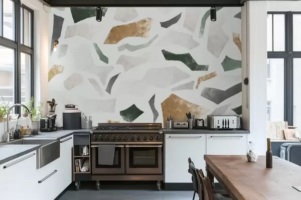 Тапете за зид Апстрактни текстурирани фрагменти у зеленим и беж тоновима бр. w05146
